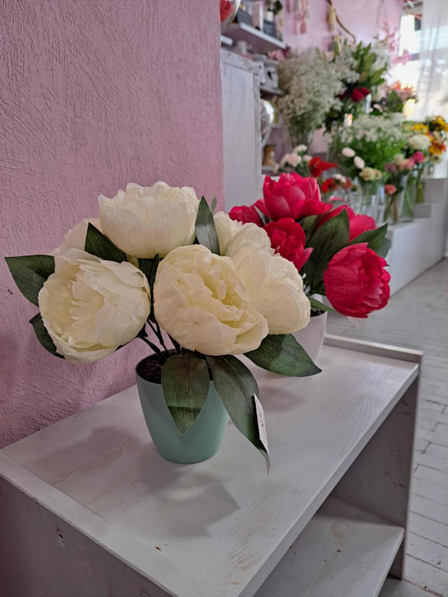 Vous souhaitez offrir une création qui durera dans le temps, ou bien qui sera sans entretien : Voici notre nouvelle gamme de pots de pivoines artificielles.