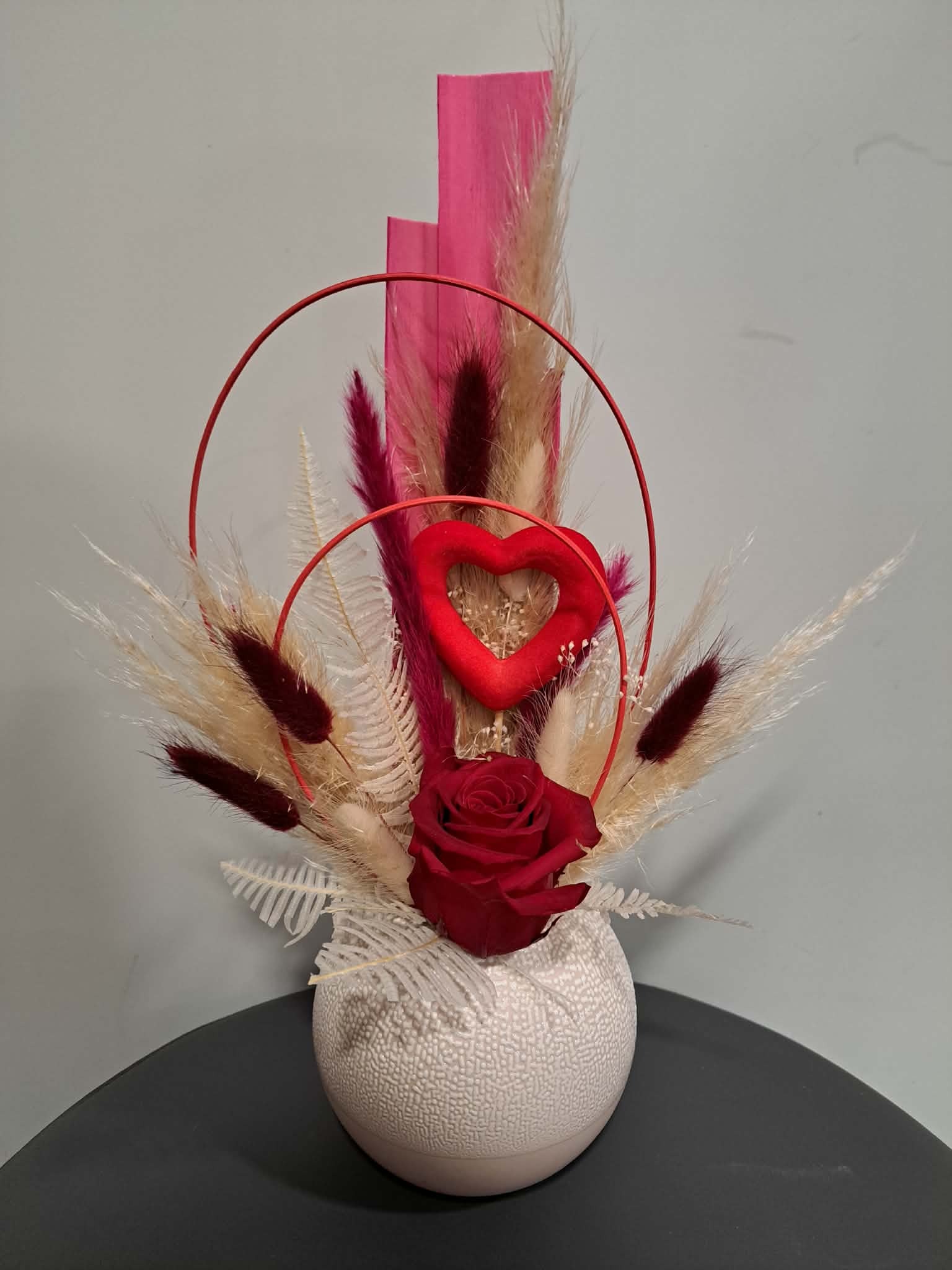 Composition de fleurs séchées aux couleurs vives et glamour pour décorer un bel intérieur !